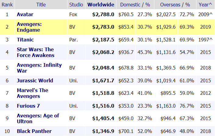 "A huge congratulations to the Marvel Studios and Walt Disney Studios teams, and thank you to the fans around the world who lifted 'Avengers: Endgame' to these historic heights," Alan Horn, Disney co-chairman and chief creative officer, said in a statement.