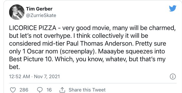 By now, we’ve had countless reactions for “Licorice Pizza” on social media. The most honest writeup you will find is the one I posted on Sunday.