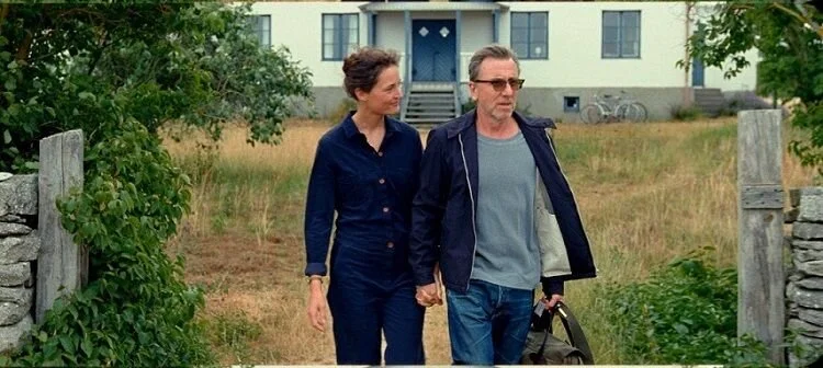 Set in Fårö, which Bergman called home for close to 40 years until his death, and now a touristic attraction for cinephiles, the film kicks off with married filmmakers Chris (Vicky Krieps) and Tony (a snidely amusing Tim Roth) arriving at the remote Swedish town for a summer retreat. There’s a telling aura that something is amiss in their relationship; more distanced than affectionate, it feels like the final days of a relationship that had long meant to end; there’s a polite, but awkward mutual friendliness that exudes between them.