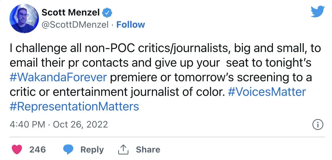 Clayton Davis (Variety): “[Wakanda Forever] is a beautiful tribute to Chadwick Boseman. Visual stunner, with Angela Bassett commanding every scene she inhabits. Rihanna's "Lift Me Up" will do that for many. Another great post credit scene that's genuinely a jaw-dropper. Don't know about Oscars.”