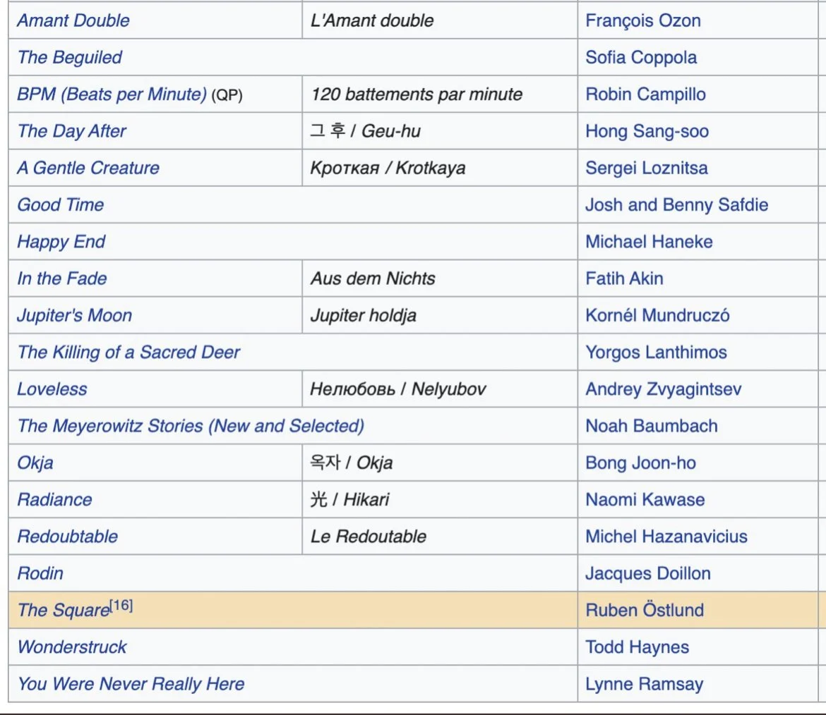 So, five years hence, what actually deserved the Palme? I would have gone with a somewhat radical choice, an “action” movie, The Safdies’ pulse-pounding “Good Time,” followed by Lynne Ramsay’s “You Were Never Really Here,” Ostlund’s “The Square,” Michael Haneke’s underrated “Happy End” and Andrea Zvyagintsev’s “Loveless.”