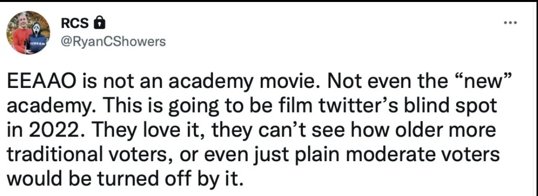 Other than these four films, I don’t believe anything else stands a chance. “Women Talking” is going to be too divisive amongst voters, reviews for “Avatar: The Way of Water” just aren’t good enough, “TÁR” is the token artful critical darling that gets nominated/doesn’t win, and finally “Elvis” is well-loved but lacks the needed momentum to boost it up.