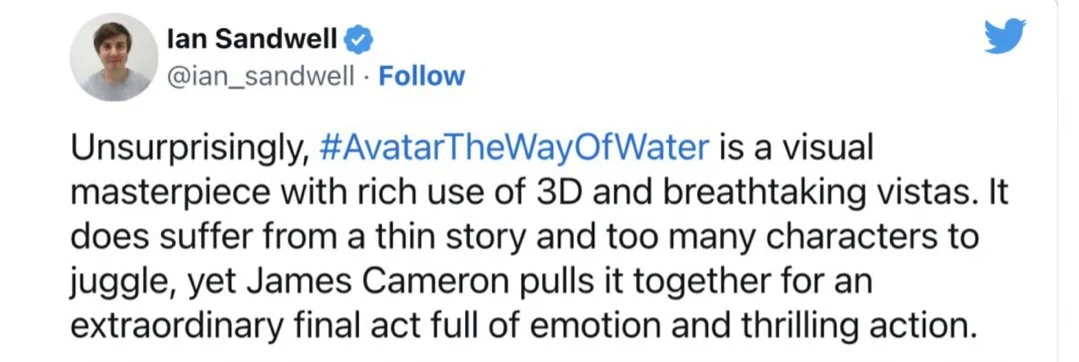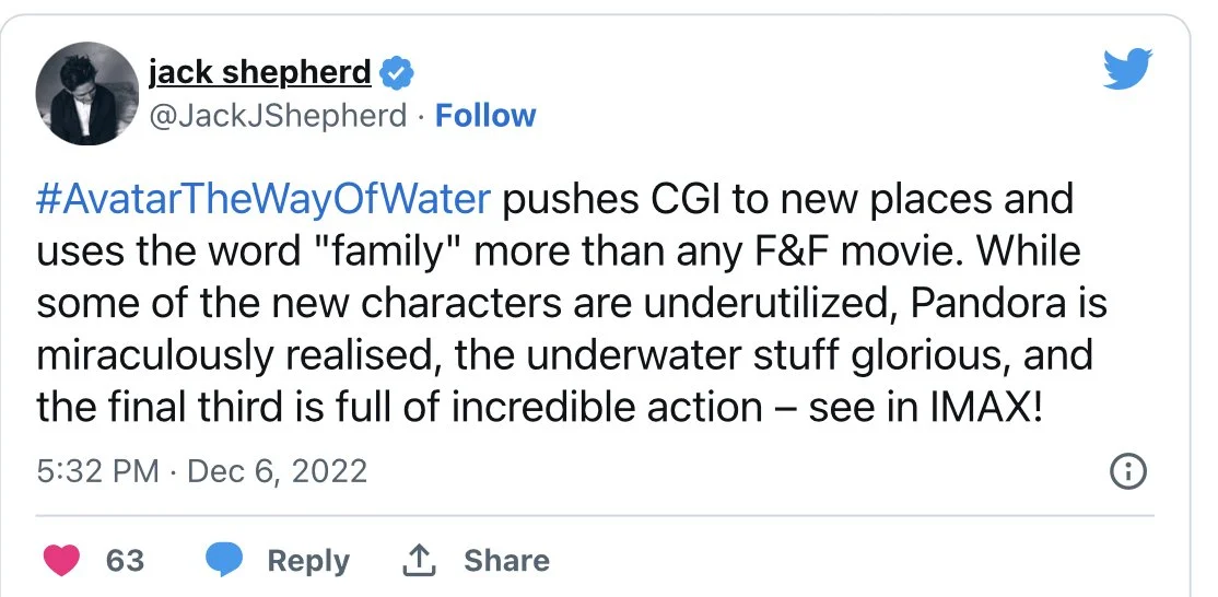 So far, it’s looking very good for James Cameron’s 192-minute epic. The reactions are almost all positive with, again, many pointing out how the stunning visuals overshadow the story. We’ll wait for the reviews to drop next week, but a very good start for ‘The Way of Water.’