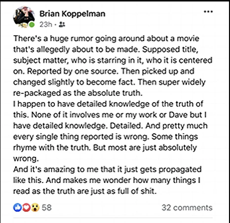 Now, we need THR writer Borys Kit to clarify his reporting on “The Movie Critic” because, based on what Koppelman is saying, almost everything about Kit’s article was false?
