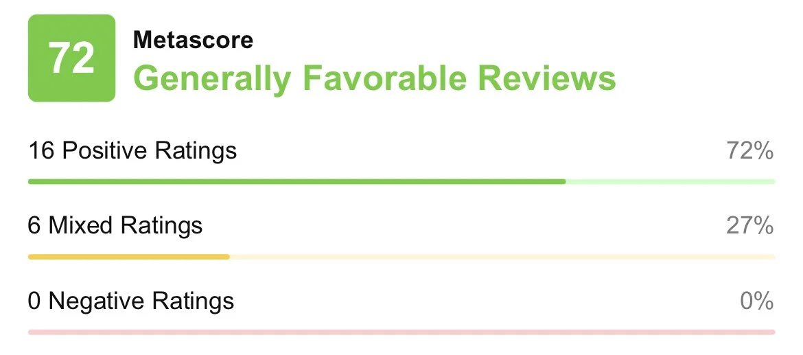 You’ll have his apologists, flat-out raves from David Ehrlich and Bilge Ebiri, mostly, but the reception is fairly muted. It now has a 72 on Metacritic, down from the 80s.