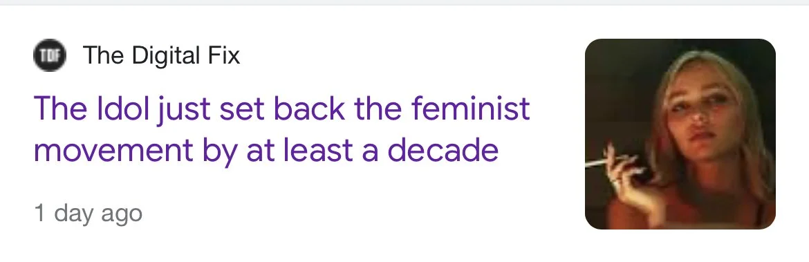 A Digital Fix piece, written by Charlotte Colombo, claims that Levinson’s HBO series “The Idol” has set back the feminist movement by “at least a decade.” Hilarious.