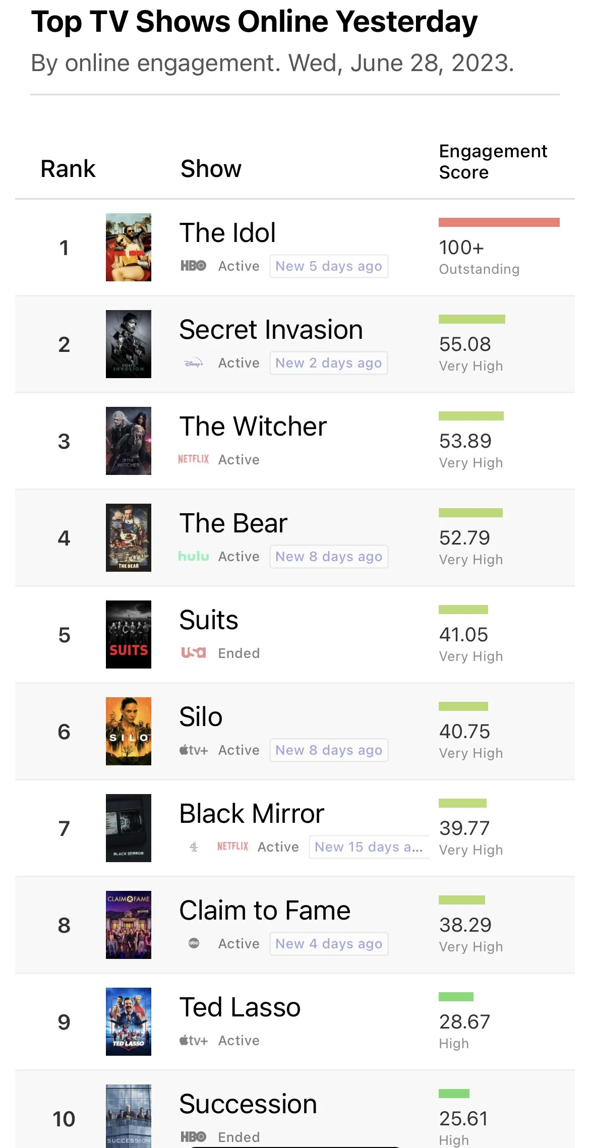 Case in point, my 06.26.23 piece about “The Idol,” which has been shared close to 10k times. It’s been the most viewed article of the week and has had an assortment of newbies showing up to this site, both pro and con, engaging in heated discussion about this polarizing show.