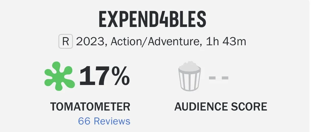 The reviews have not been good for “The Expand4bles,” and I’m being polite in my assessment. It has a 31 Metascore and sits at a 17% on Rotten Tomatoes. Razzies await this movie.