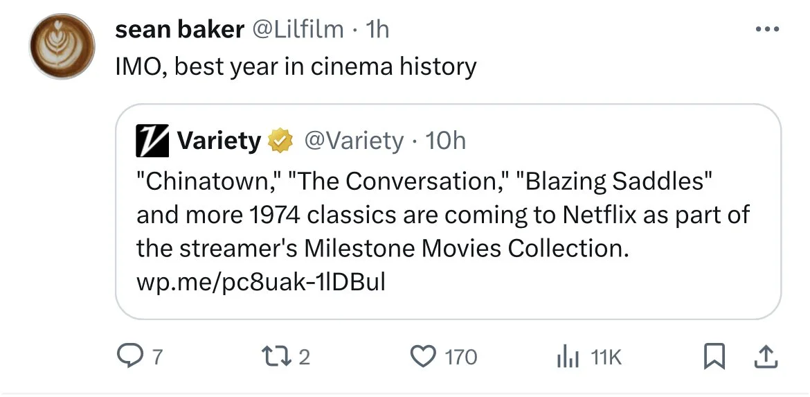1974 was quite the year for movies. And so, 50 years later, Netflix will be celebrating the golden jubilee. In recognition of the anniversary, the streamer has announced a new, dedicated content row: “Milestone Movies: The Anniversary Collection”.