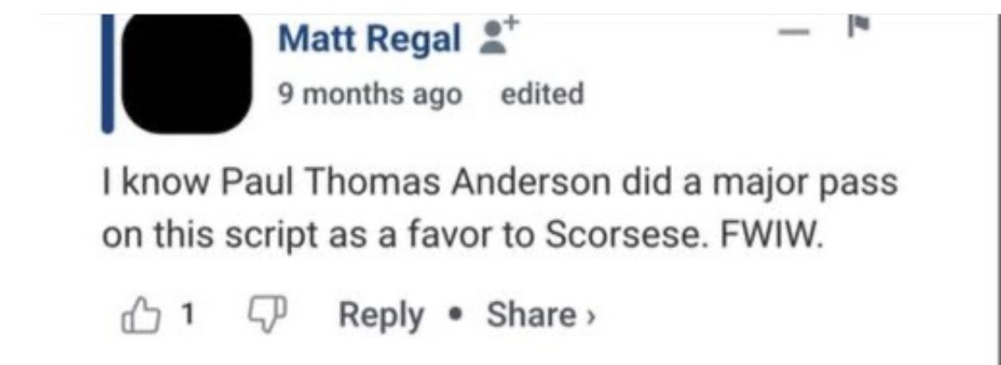 UPDATED: I don’t want to name names here, but two sources of mine, one of which worked extensively on Scorsese’s film, are confirming Bramesco’s claim — PTA did, in fact, take part in rewriting a good portion of the script. There might, or might not, be a few trades reporting on this soon. If I was able to corroborate it then it’ll be very easy for them to do the same.