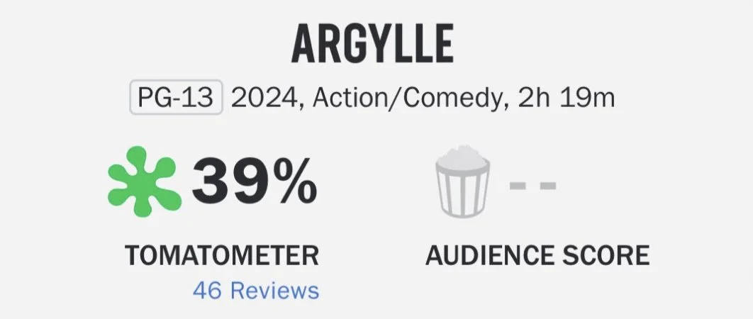 Back to “Argylle,” which I won’t be catching until tonight, it debuts with a 39% rotten score and 40 Metascore. Those are the worst reviews of Vaughn’s career — currently lower than 2017’s “Kingsman: The Golden Circle” and 2021’s “The Kingsman.”