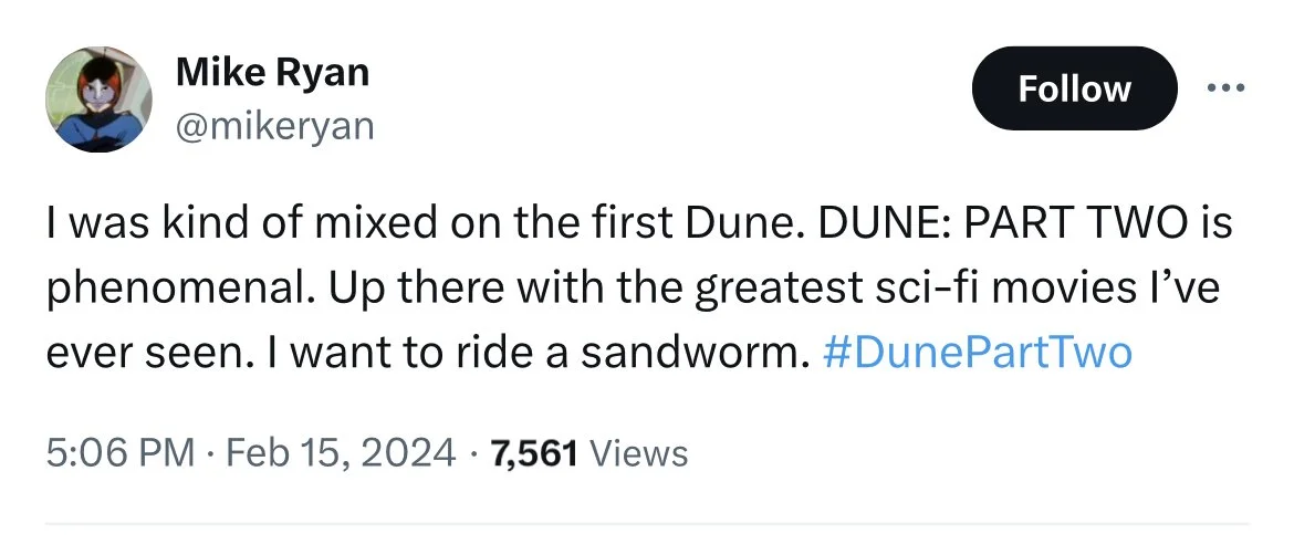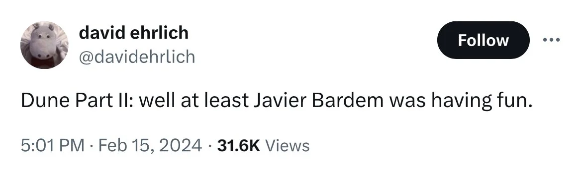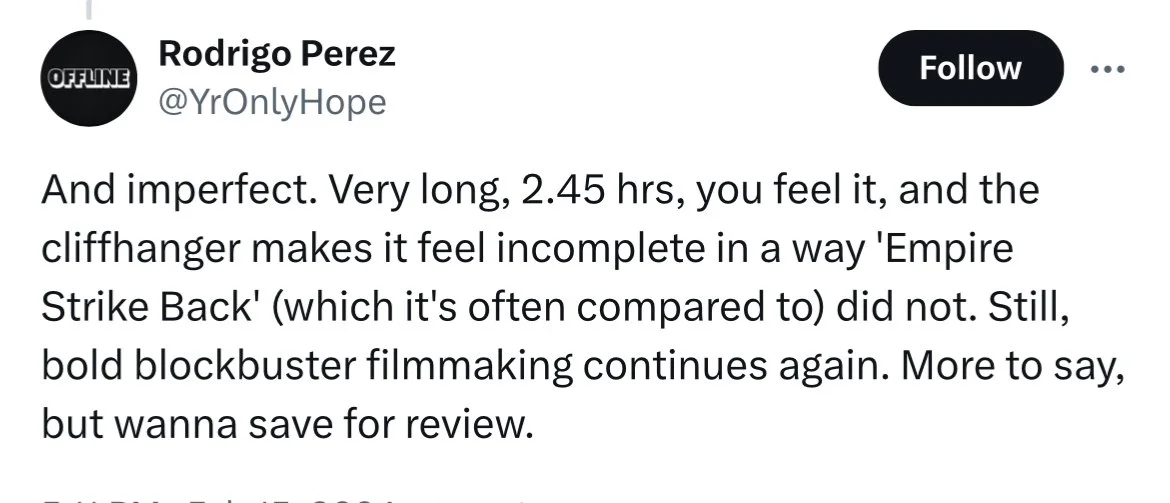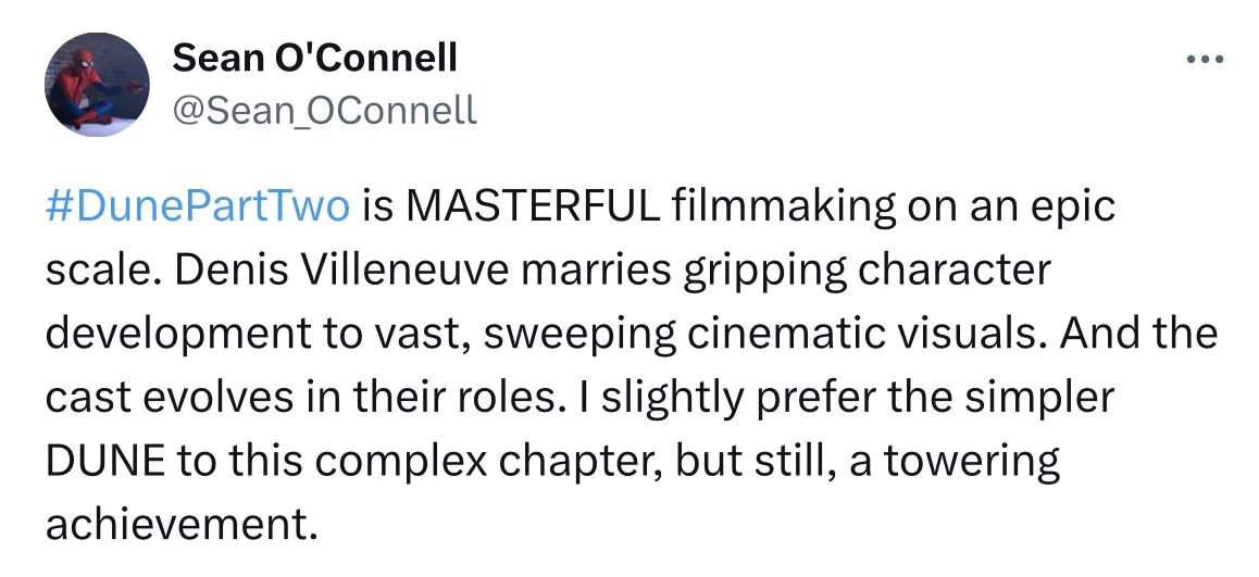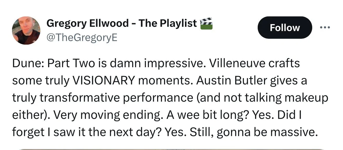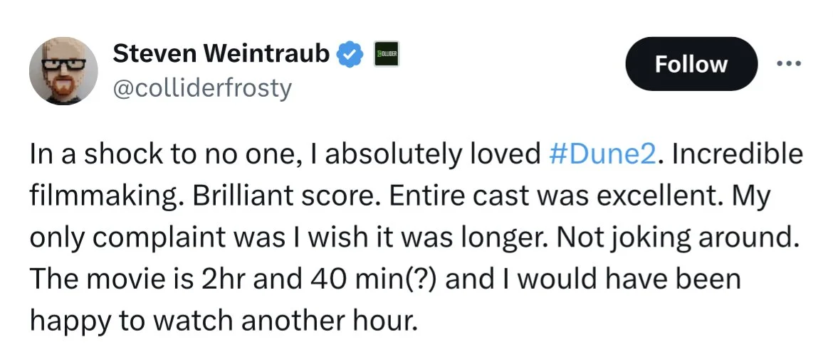 However, the social media embargo has lifted on “Dune: Part Two,” and I’m seeing some mixed takes. Don’t get me wrong, most of the reactions (as you’ll see below) are uniformly gushing and glowing towards Villeneuve’s film, but there are cracks in the dam — a contingent of people who still believe that ‘Dune’ is one long, big bore.