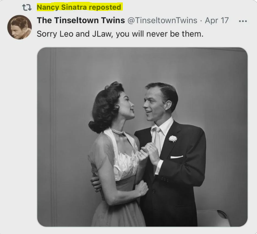 Nancy Sinatra reposted a tweet on X which seems to disapprove of casting Leonardo DiCaprio as her father Frank Sinatra & Jennifer Lawrence as his wife Ava Gardner in Maritn Scorsese’s biopic.
