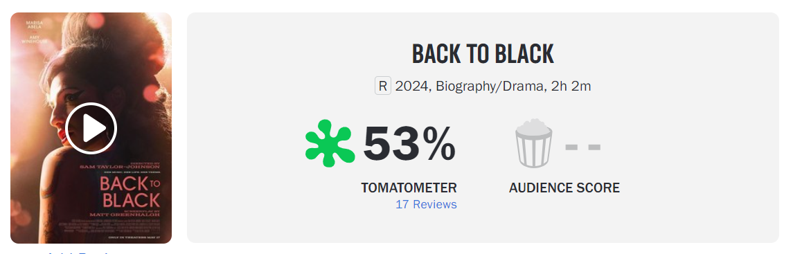 The first reviews are in, almost all coming in from UK outlets, and “Back to Black” so far has a 53% on Rotten Tomatoes and 55 on Metacritic.