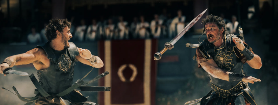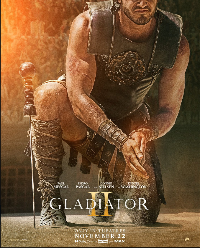 A trailer will be released tomorrow morning. The top billed names on the poster are, as suspected, Paul Mescal, Pedro Pascal, Connie Nielsen and Denzel Washington. The cut that was test screened in April had a runtime of 2 hours 40 minutes.