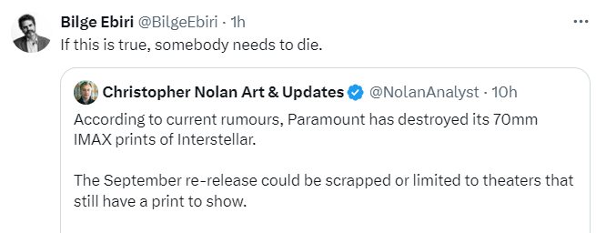 Suffice to say, Nolan is not to happy about this and is said to be “furious.” If this ends up being true then this is a colossal f*ck up on the part of Paramount. Why would they announce a 70mm IMAX re-release without realizing what they’ve done to the prints?