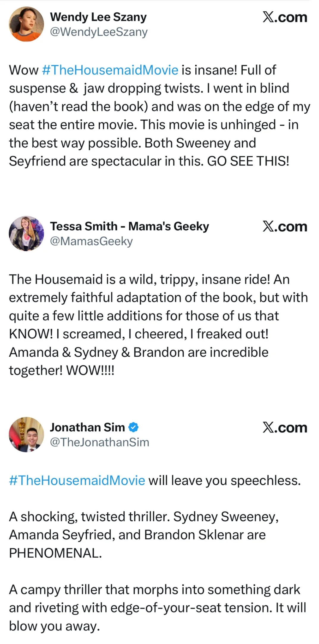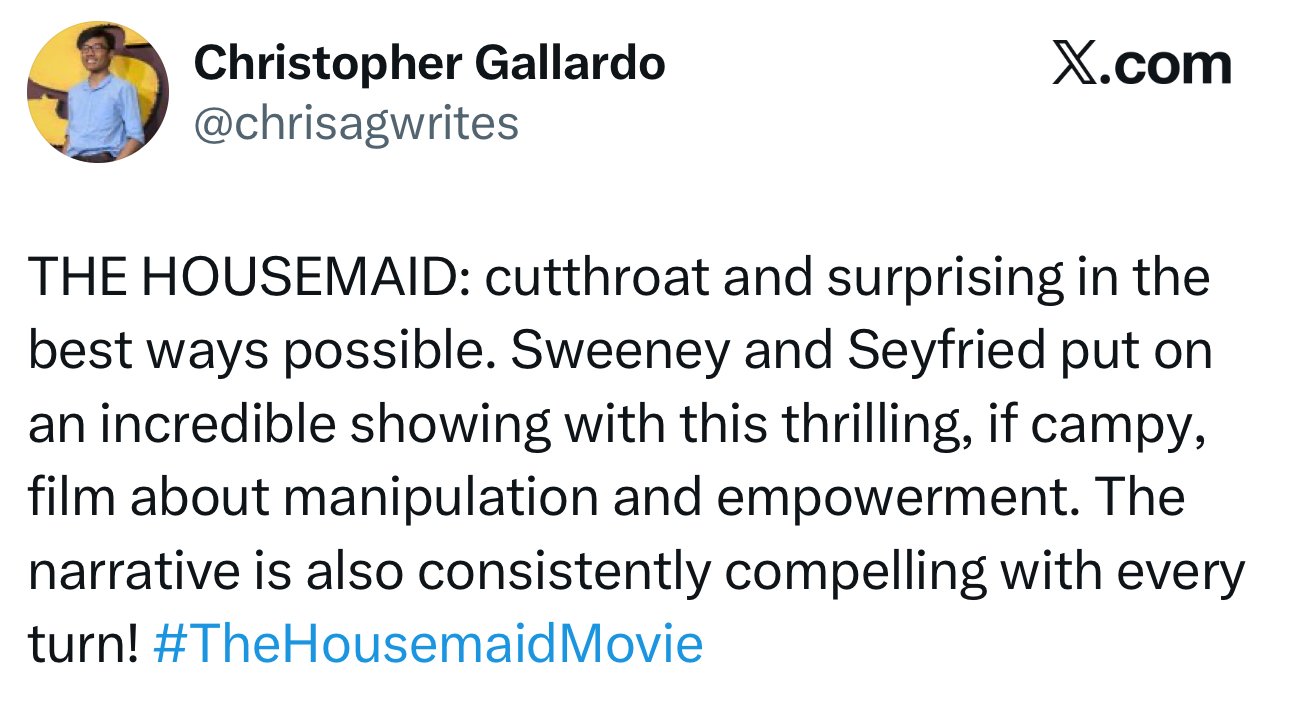 Of course, the first reactions that have popped up for me about “The Housemaid” — below — shouldn’t be taken too seriously. But clearly, Lionsgate has confidence in this project, as they’ve allowed the social media embargo to break almost a month before the film’s release.