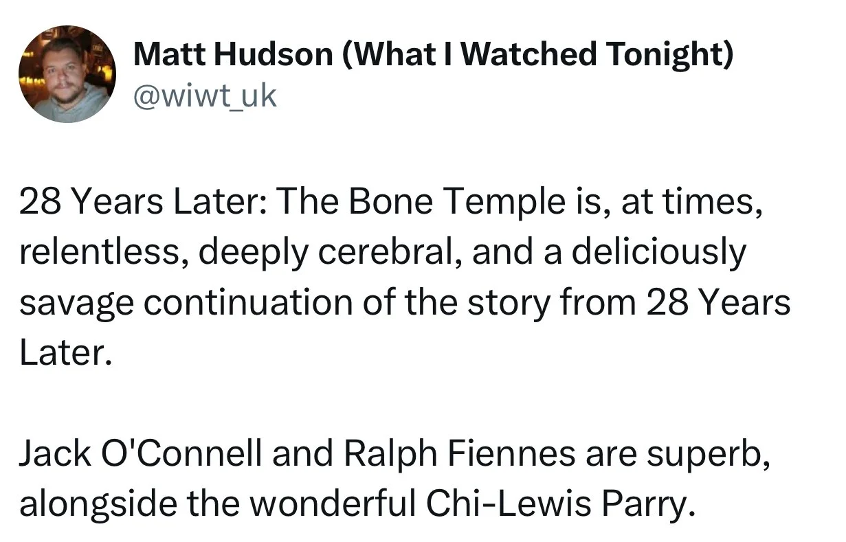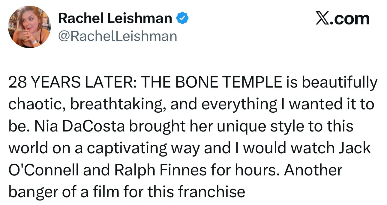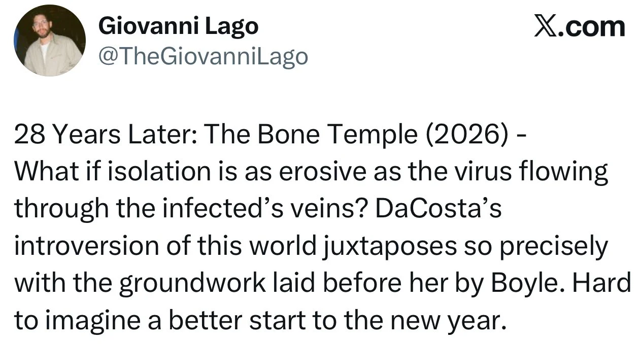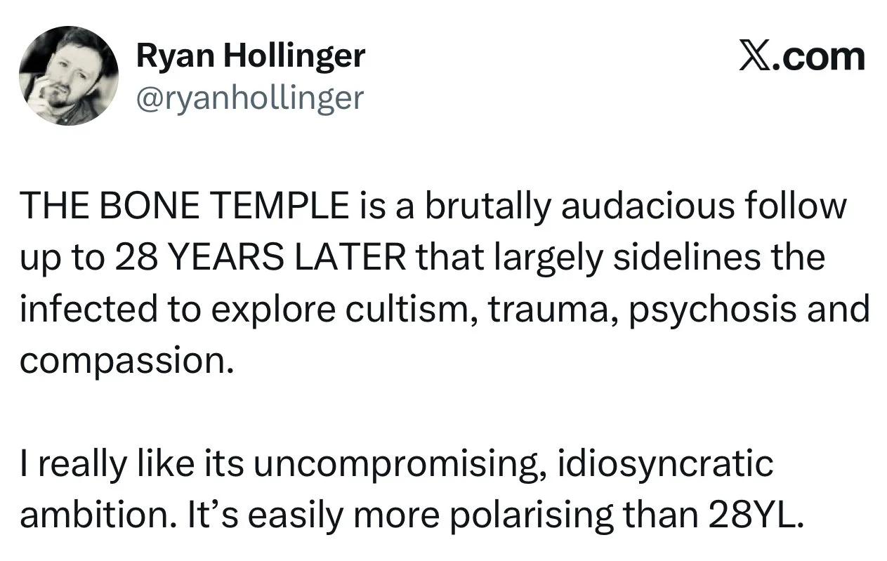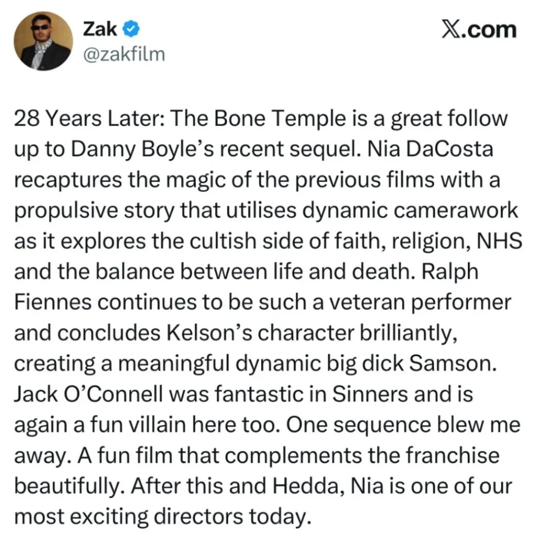 Here’s a surprise. Sony Pictures not only decided to surprise screen Nia DaCosta’s “28 Years Later: The Bone Temple”in NYC, almost six weeks before its release, but they’ve also allowed social media reactions to roam freely online.