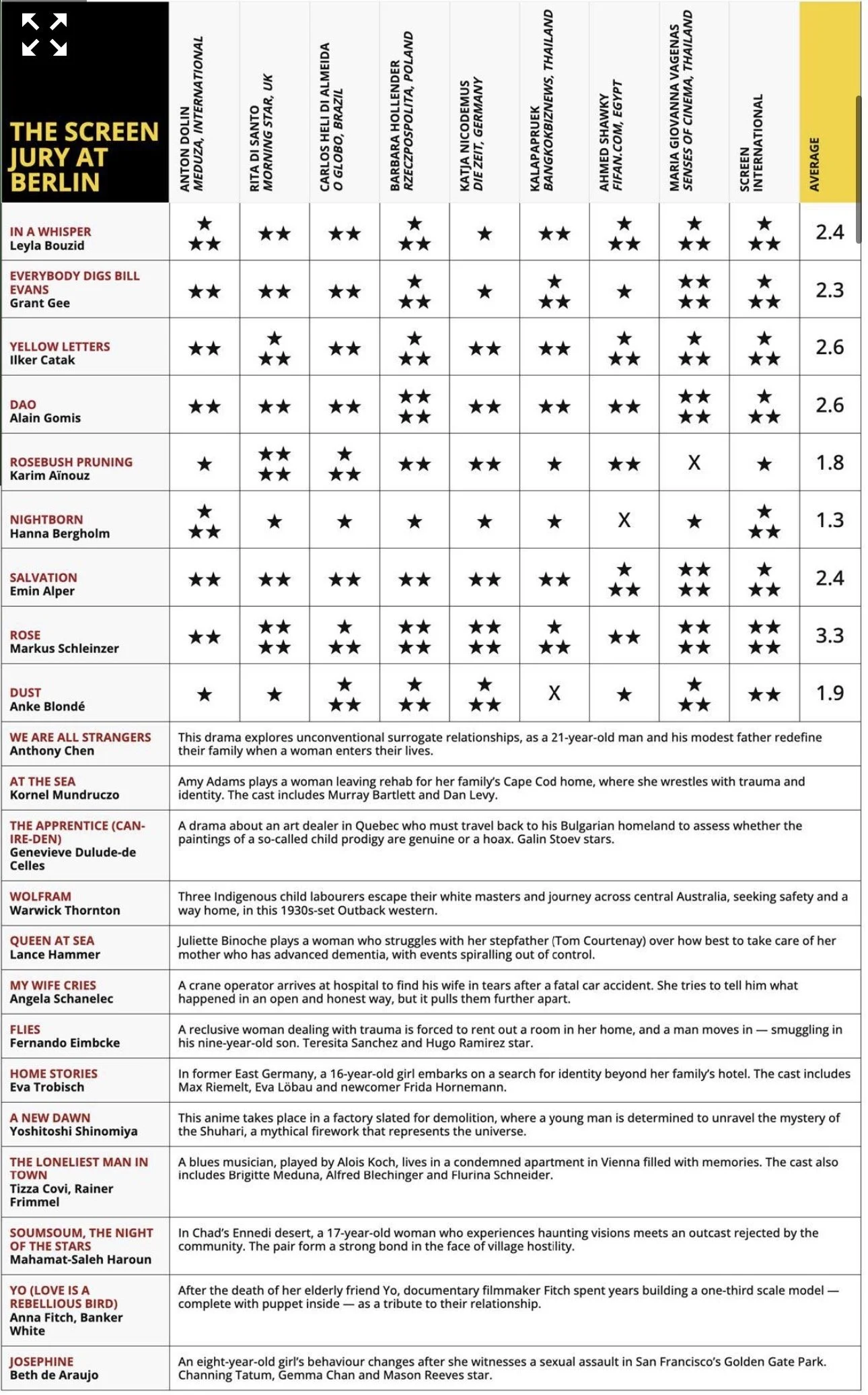 UPDATE: “Rose” is now way ahead on the 2026 Berlin jury grid, receiving an average of 3.3 from the critics.