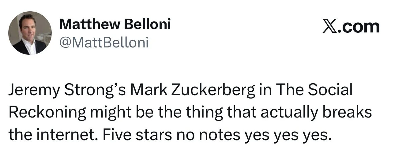 Jesse Eisenberg declining to return as Mark Zuckerberg for Aaron Sorkin’s “The Social Reckoning” was certainly going to be a major obstacle for this film to overcome. Here’s a role Eisenberg made iconic 15 years ago, and just the thought of having somebody else playing Zuckerberg rings false.