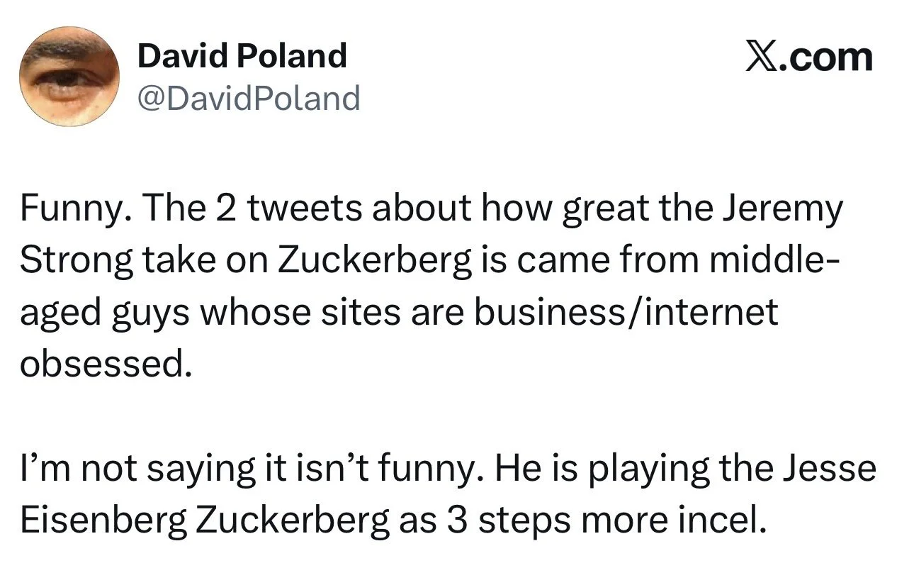 In the trailer, Mikey Madison, playing a real-life Facebook whistleblower, says she’s there to support Zuckerberg and Facebook rather than damage it. Jeremy Strong’s Zuckerberg is then introduced, describing himself in a courtroom as a “professional defendant” and “free speech absolutist.” In a more forceful moment, he asserts his authority, making it clear that when he says no, the discussion is effectively over.