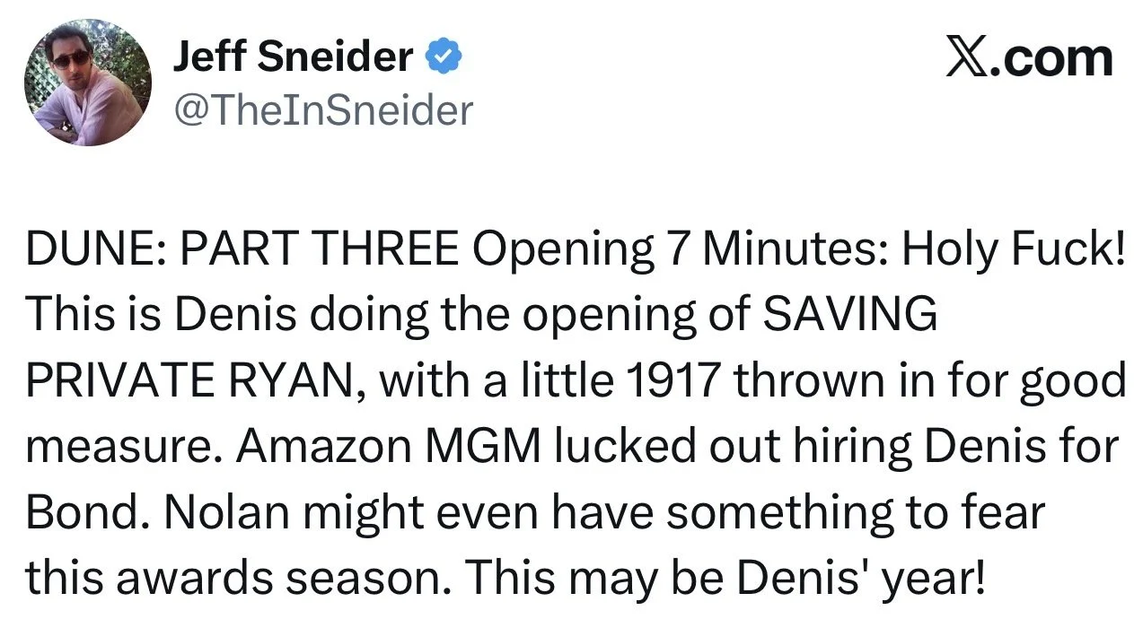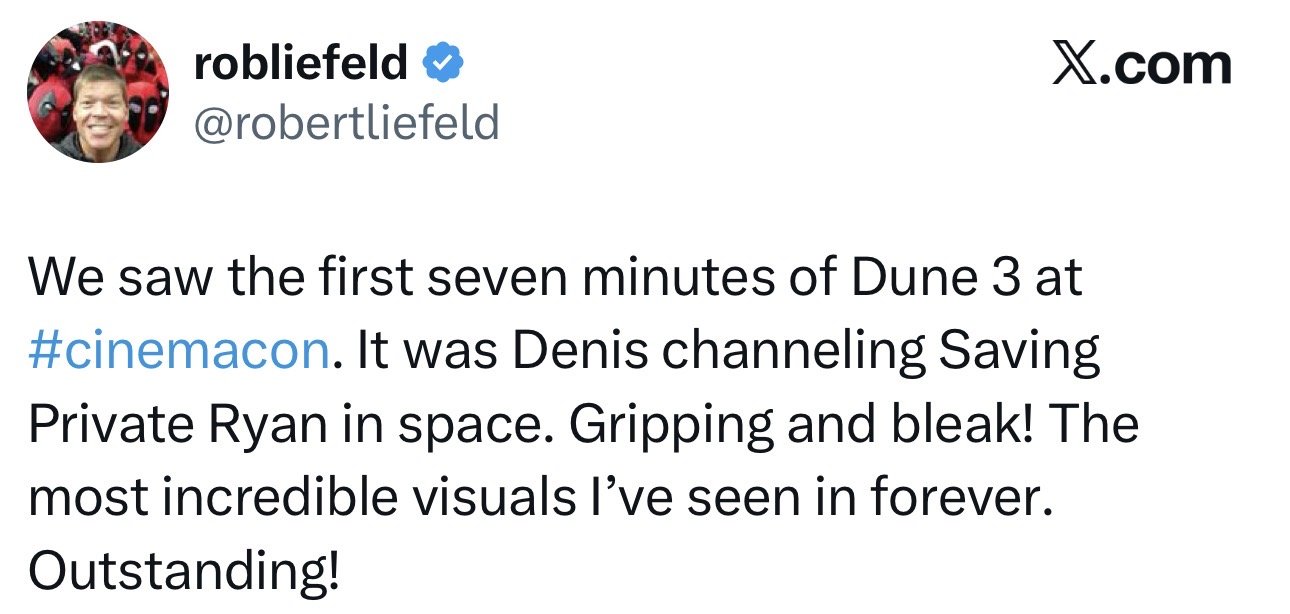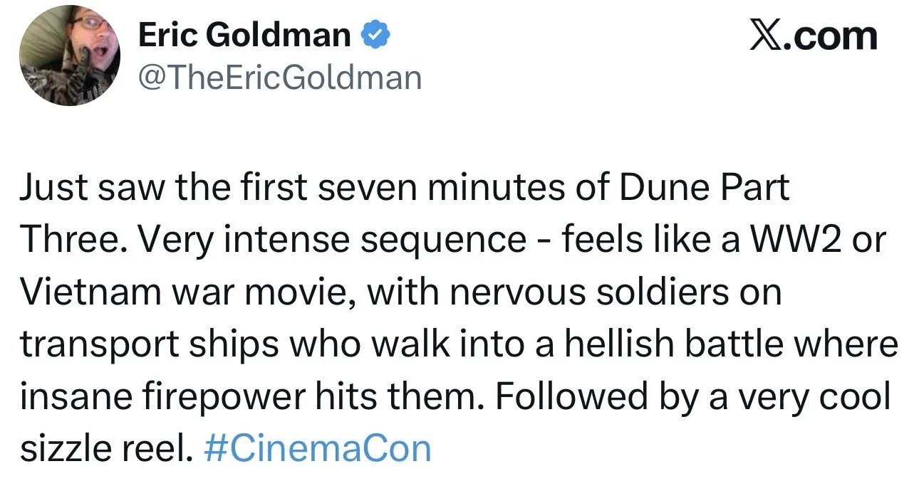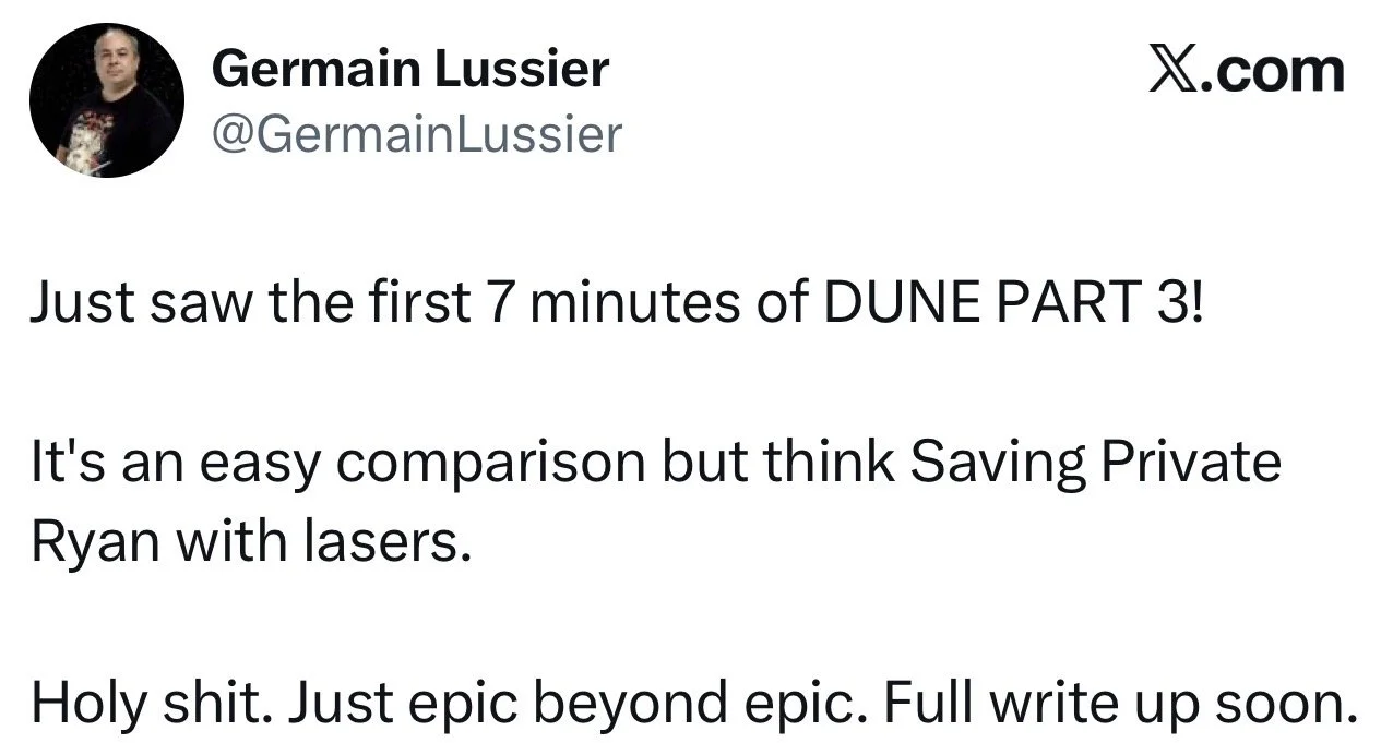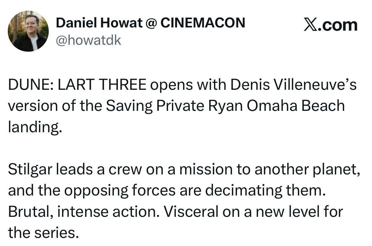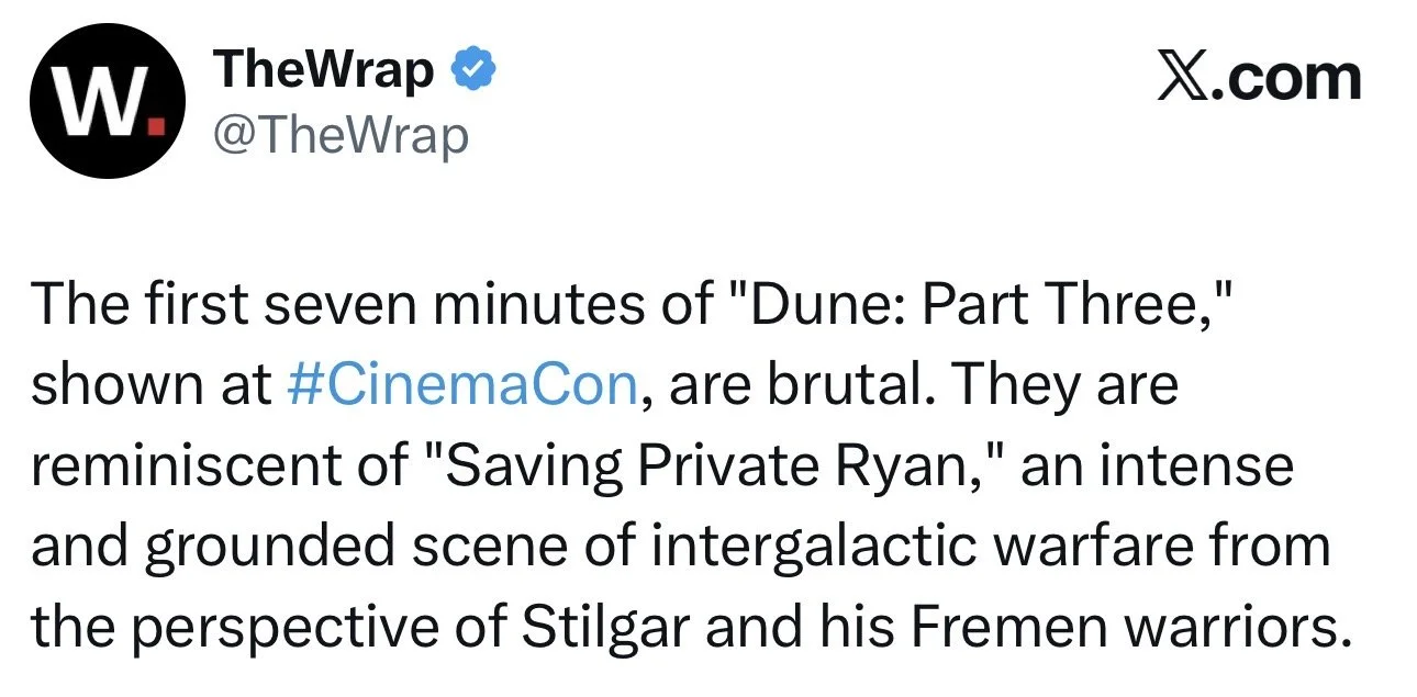 To say the reception was positive would be an understatement. Judging by the reactions—many of which compared the footage to the iconic Normandy assault in Steven Spielberg’s “Saving Private Ryan”—Villeneuve may have delivered something very special with this third and final chapter of the franchise.