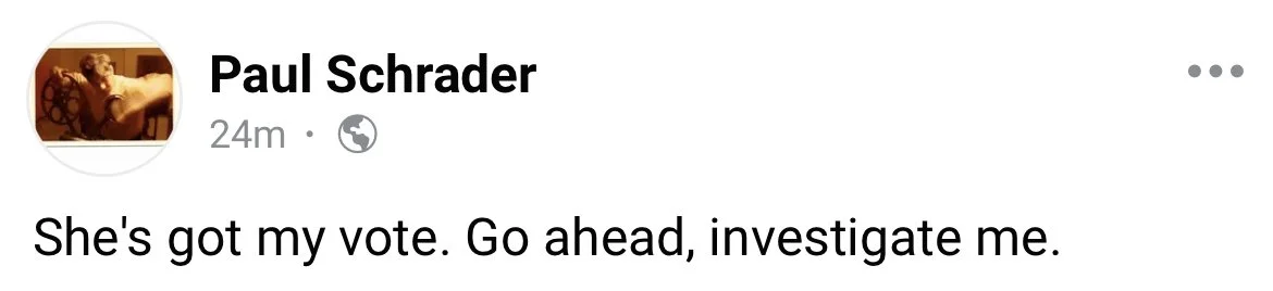 Now, he’s doubled-down on social media by saying that she now also has his Oscar support and, for good measure, added a splash of taunting towards the Academy: “She’s got my vote. go ahead, investigate me.”