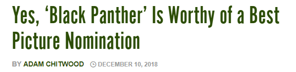 In the next few weeks you will no doubt see a real push by the media to present "Black Panther" as a worthy Best Picture contender. All for the sake of progress and a rabid Disney agenda that is expertly pushing this narrative. Don't bite.